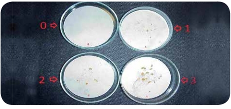 Petri kabına yerleștirilen filtre kağıdının üzerine 2gram demir talașı ve 2ml emülsiyon ilave edilerek 2 saat beklenir. Elde edilen sonuçlara göre korozyon seviyesi 0,1,2,3 olarak derecelendirilip erken müdahale edilmesi sağlanır.